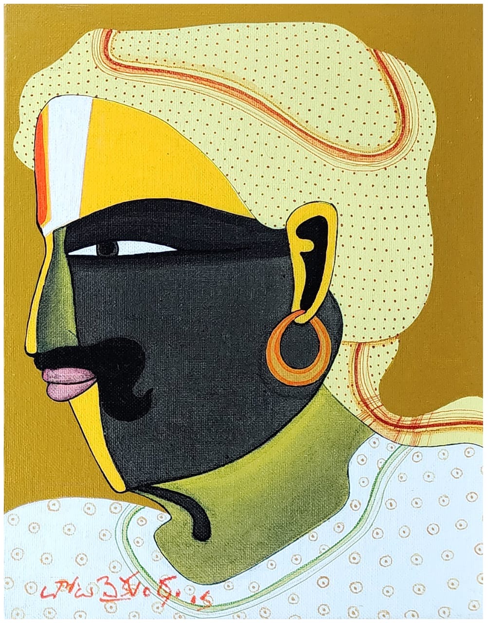 Thota Vaikuntam in his art draws his inspiration from the rural environs of Telangana and the men and women who inhabit that space. Born in 1942 in Boorugupali, Telangana, Vaikuntam currently is based in Hyderabad. Vaikuntam completed a Diploma in Painting at the College of Fine Arts and Architecture, Hyderabad and then another in Painting and Printmaking from the Faculty of Fine Arts at Maharaja Sayajirao University, Baroda under the tutelage of KG Subramanian. His art tries to capture the