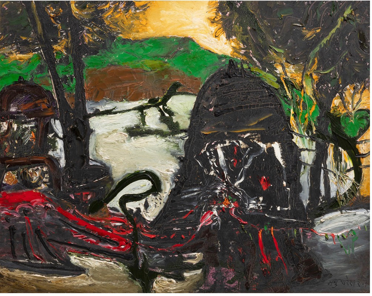 Born in 1939 in Gujarat, Manu Parekh completed a Diploma in Drawing and Painting from the Sir J.J. School of Art, Mumbai, in 1962. Parekh’s early work explored the relationships between man and nature, as according to him, this was an energetic link that had to be celebrated. The artist also points out that, since then, contradictions have formed the basis of his artistic practice, no matter the subject or genre of his works.