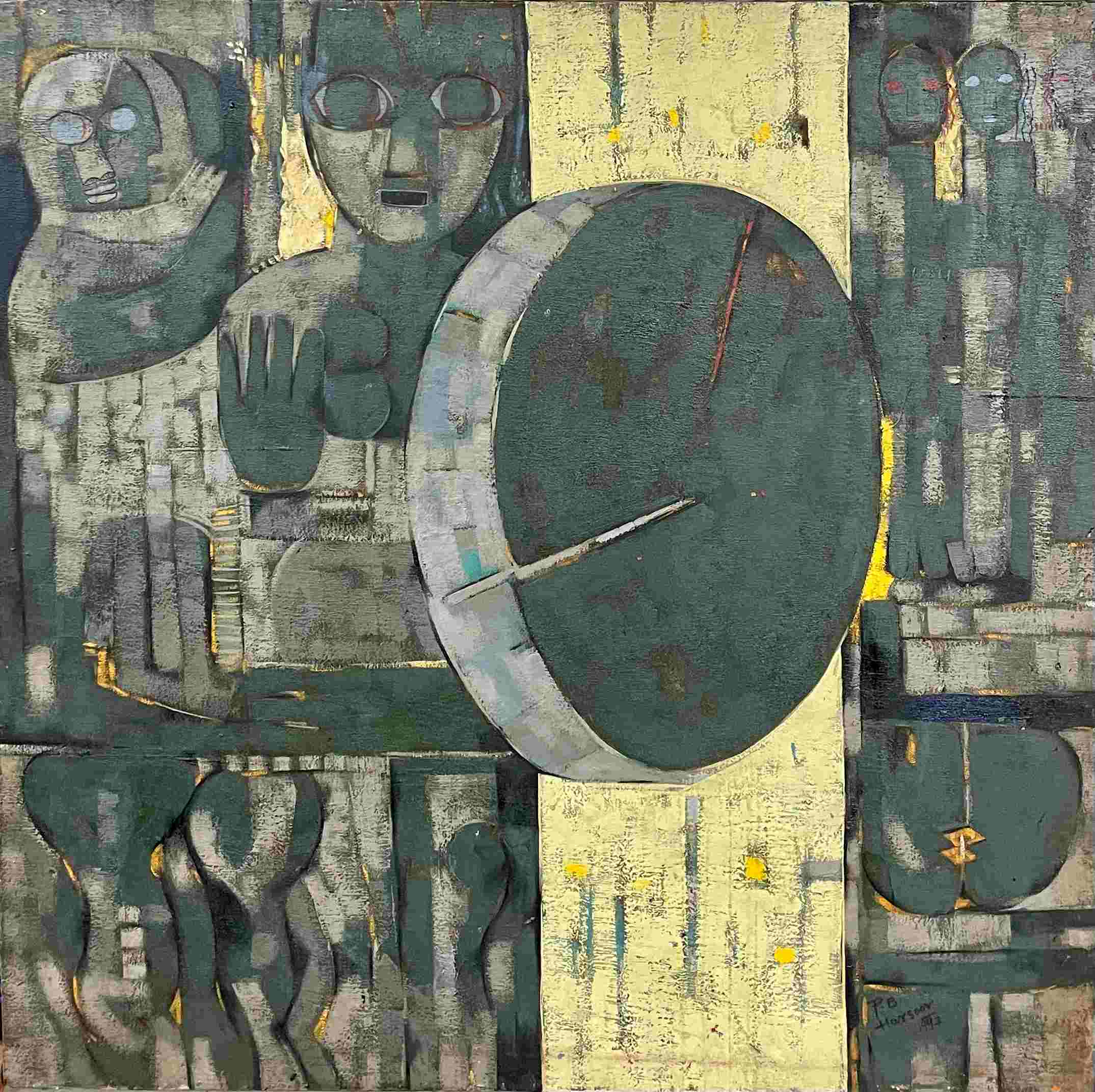 Prabhu Harsoor (1962) has been reflecting on forms that transpire between the abstract and the figurative and acquire a visual language that is particularly his own. He has several visualisations from his memories that have given his works a special treatment in the realm of the distorted from that of the concrete. Some of his abstractions are similar to a linguistic script and are deliberately engaging with the idea of the formation of a language. Very evocative of the famous Indian modernist