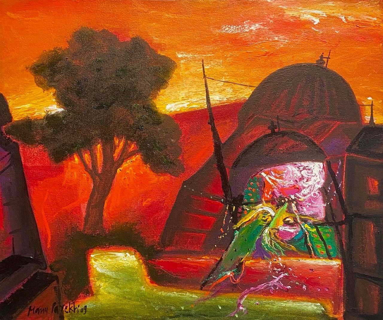 Born in 1939 in Gujarat, Manu Parekh completed a Diploma in Drawing and Painting from the Sir J.J. School of Art, Mumbai, in 1962. Parekh’s early work explored the relationships between man and nature, as according to him, this was an energetic link that had to be celebrated. The artist also points out that, since then, contradictions have formed the basis of his artistic practice, no matter the subject or genre of his works. Banaras as a city came to play an integral role in