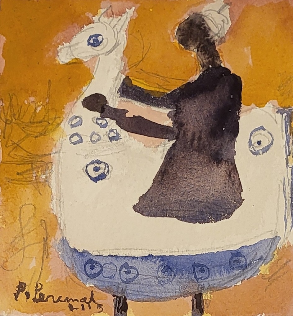 P. Perumal (b. 1935, Tamil Nadu) was a National Scholar in drawing and painting (1962–64). Deeply influenced by his rural childhood, he went on to study at the Government College of Arts and Crafts, Chennai, where he became a member of the Progressive Painters’ Association founded by K. C. S. Paniker. Dedicated to reviving traditional artistic approaches, he developed a distinctive visual language marked by expressive line work and graceful, elongated figures. Perumal’s