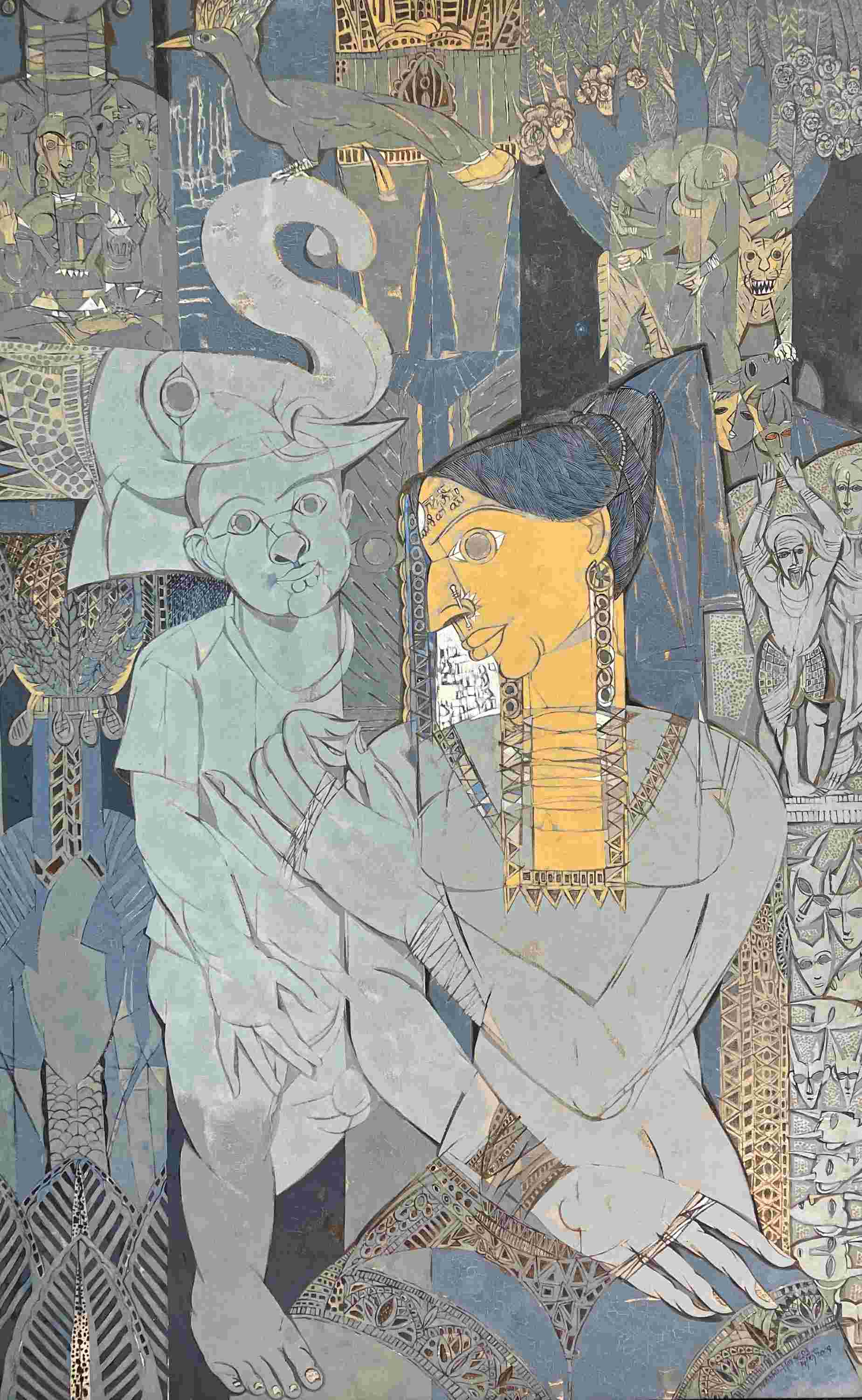 Prabhu Harsoor (1962) has been reflecting on forms that transpire between the abstract and the figurative and acquire a visual language that is particularly his own. He has several visualisations from his memories that have given his works a special treatment in the realm of the distorted from that of the concrete. Some of his abstractions are similar to a linguistic script and are deliberately engaging with the idea of the formation of a language. Very evocative of the famous Indian modernist Artist Vasudeo S. Gaitonde's works, Harsoor explores alphabets as he visualises them and, in the process, engages with the idea of the artistic practice of script-making and the lingering unfamiliarity that is staged at the earliest stages of creation. He stretches his imagination from cultural images of communities in India, especially that of Karnataka, to that of the past and the present, where he visually extends his feelings of the immediate moment in his experience. His abstractions are remotely representational as he dabbles at creating a newer visual culture and impact through the existing idea of the script. He also extends his visual currency towards the narration of political thoughts and leaders who have contributed immensely to the building of Karnataka's voice against fundamentalism.