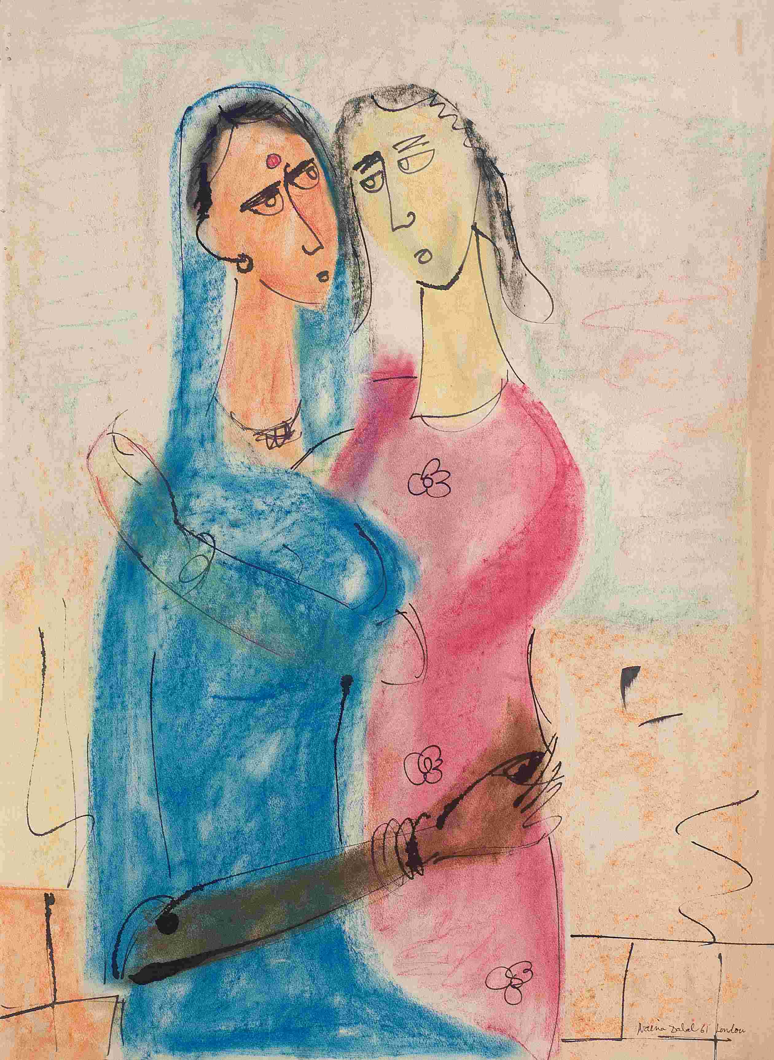 Naina Dalal (b. 1935, Vadodara, Gujarat) is a leading Indian artist whose powerful body of work in painting and printmaking testifies to a profound concern with human feeling, self, and the complex experiences of womanhood. Born in Vadodara, Gujarat, in 1935, Dalal has always stayed close to her roots, both as a person and as an artist. She studied Bachelor of Arts in Painting and Master of Arts in Fine Arts at the Maharaja Sayajirao University of Baroda's Faculty of Fine Arts and finished her