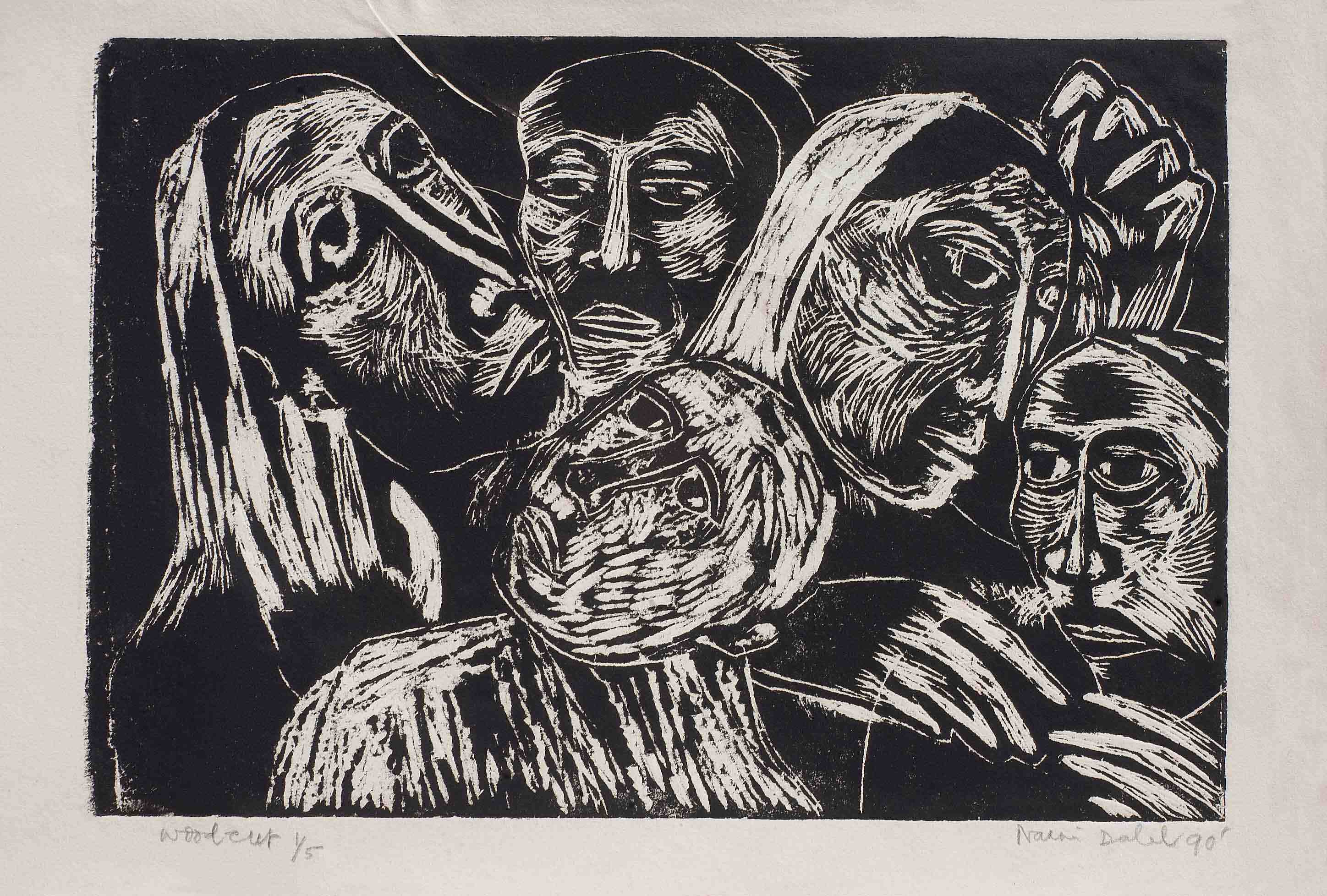 Naina Dalal (b. 1935, Vadodara, Gujarat) is a leading Indian artist whose powerful body of work in painting and printmaking testifies to a profound concern with human feeling, self, and the complex experiences of womanhood. Born in Vadodara, Gujarat, in 1935, Dalal has always stayed close to her roots, both as a person and as an artist. She studied Bachelor of Arts in Painting and Master of Arts in Fine Arts at the Maharaja Sayajirao University of Baroda's Faculty of Fine Arts and finished her academic education in 1959. Among the first female printmakers in the country, her studies led her overseas shortly thereafter, where she learned lithography at the London Polytechnic between 1960 and 1963. Subsequently, in 1977, she broadened her knowledge of printmaking by learning etching at the Pratt Graphic Center in New York. These early overseas experiences had a profound impact on her visual vocabulary, introducing her to various techniques and conceptual strategies that she would incorporate into her practice.