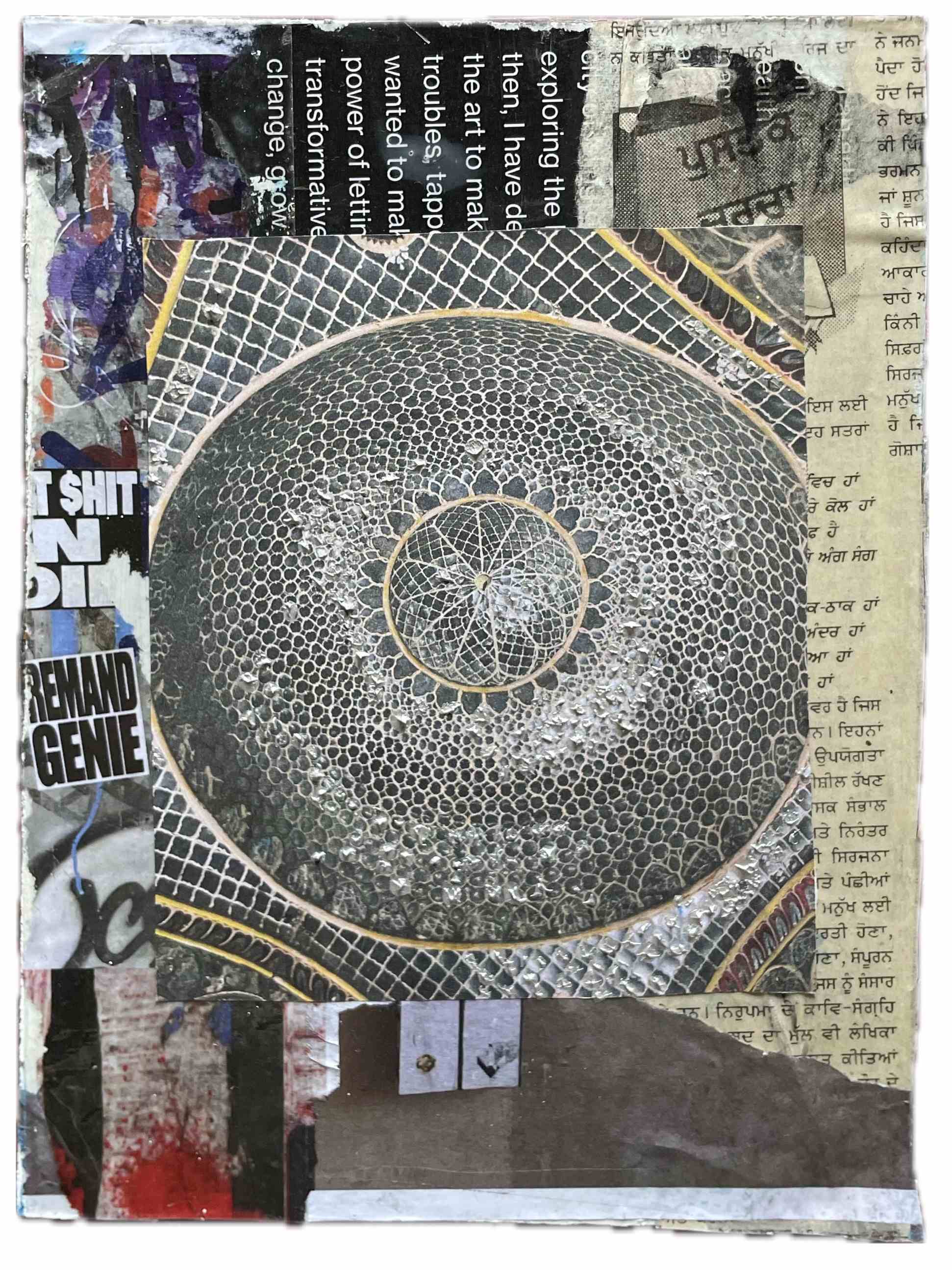 Inayat Malik is a mixed media artist based in New Delhi, India. She graduated with a BA in Fine Arts from Chelsea College of Art, London, in 2024. Working with found materials, textiles, photographs, and digital tools, she builds large and small scale collages that blur the lines between different mediums. Her interest lies in transforming the ordinary—objects, textures, patterns, and scenes from daily life—into collages that feel both familiar and abstract. Materials are