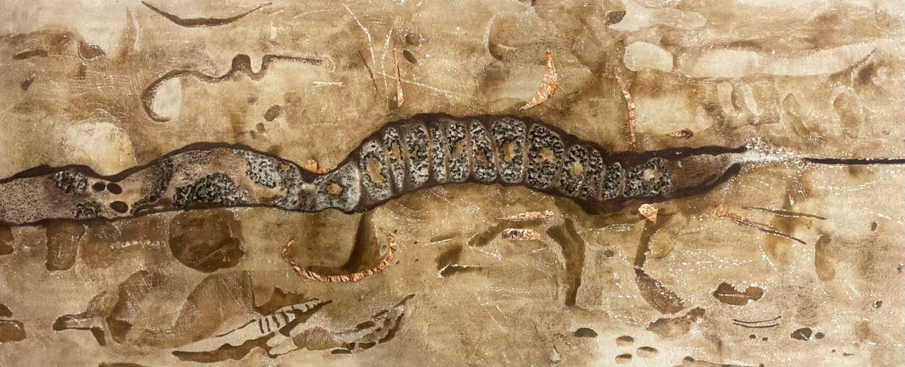 Mansi Trivedi's work formulates through a deep respect for nature through the world of textures and patterns. Be it the bark of a tree or the rugged surface of an ant hill, the thrill of creating an art piece with the same tactile quality using material of choice has been her decade long journey of experiments and learning. Further manifestation into the play of negative and positive spaces, light and shadow, tonal variations, and magnification for detail made it more challenging and interesting. This process and style of work enables her to engage deeper with patterns and forms in nature and carry on with the study of marks and remnants of natural surfaces.
