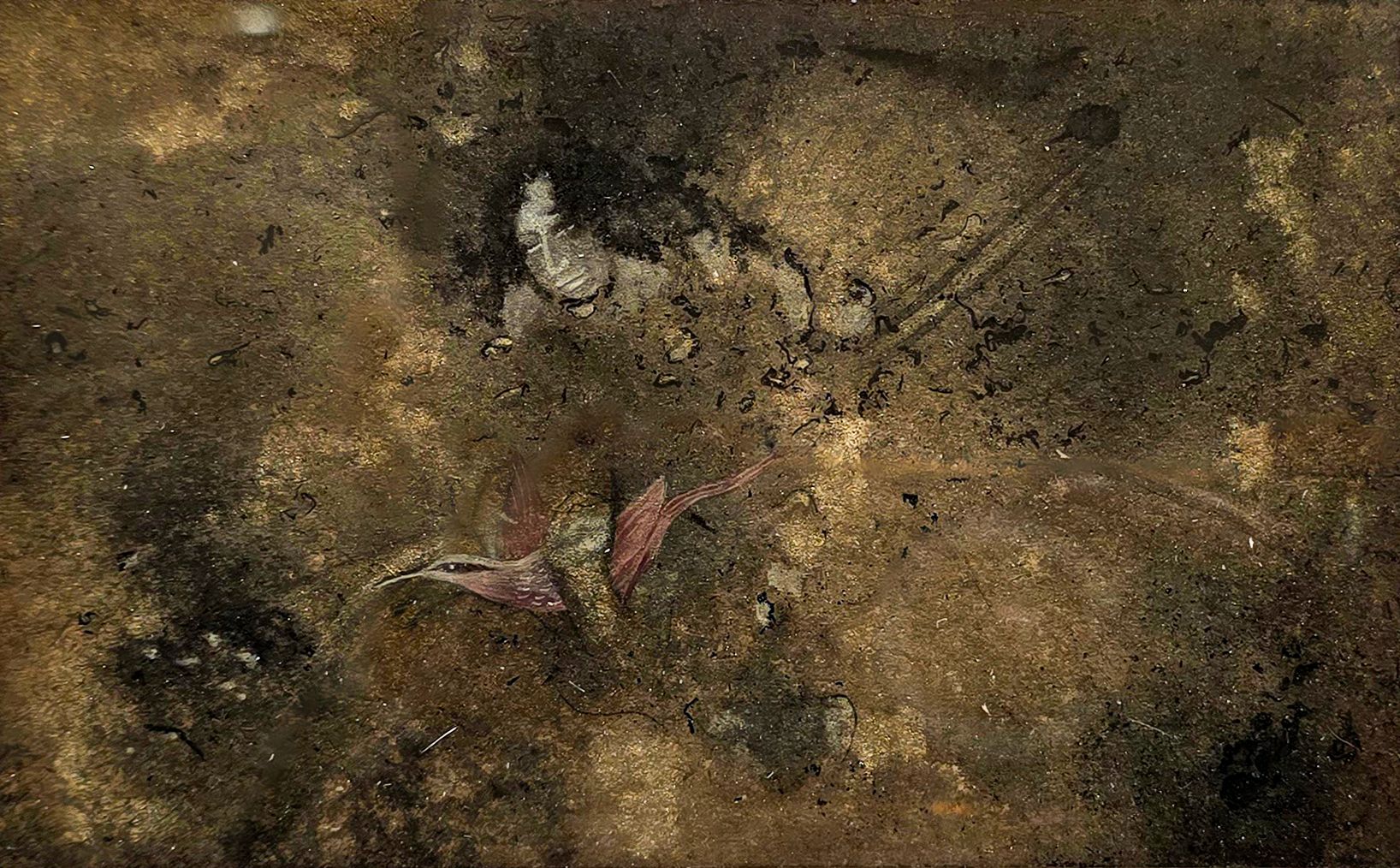 Coffee stain with ink, and gold- leaf on wasli paper | 5 x 8.5 inches