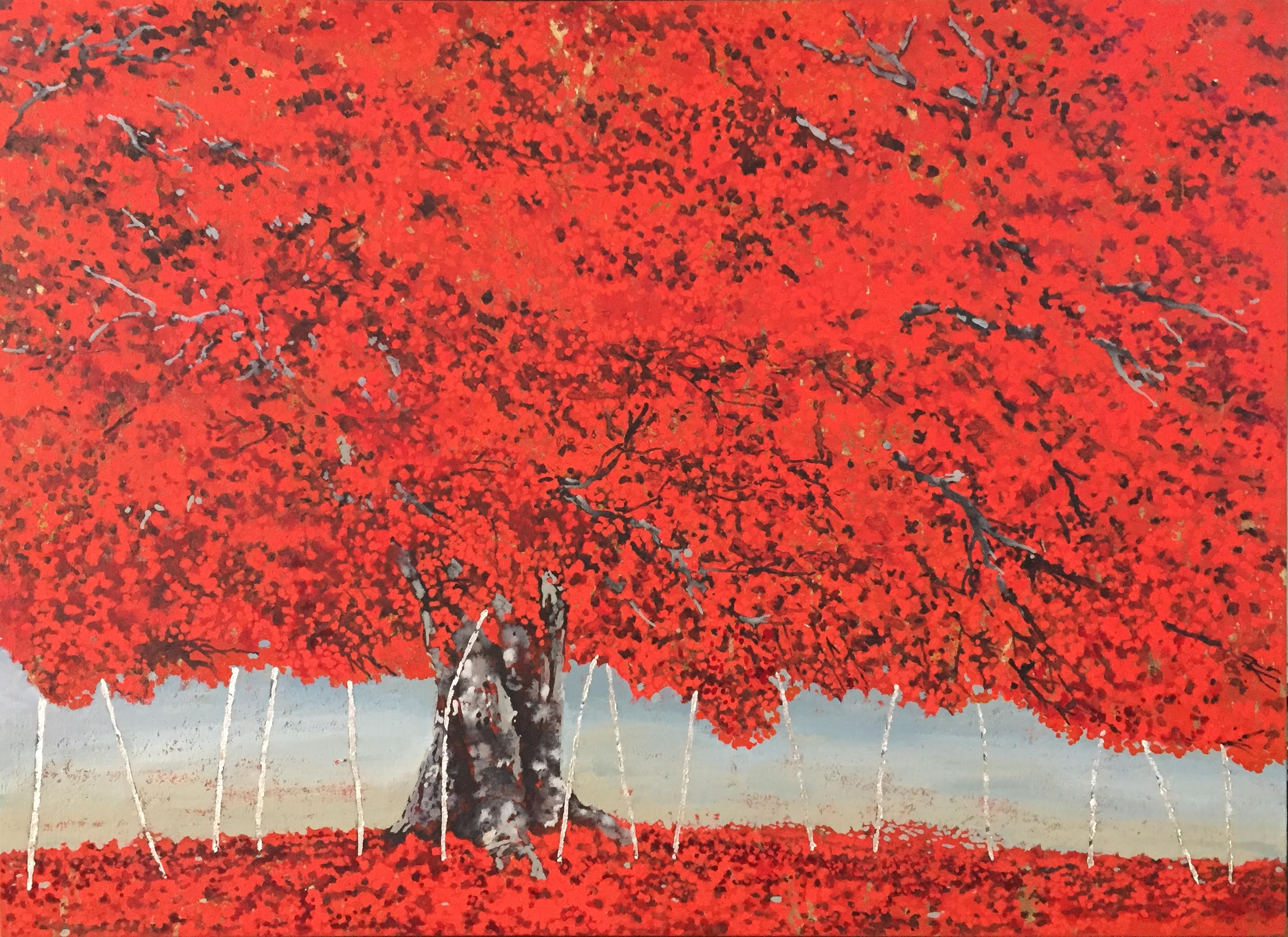 G R Iranna is an artist of reinvention who transforms his art and medium with the exigencies of the political turmoil that engulfs him. Like all artists who aspire beyond the mediocre, his works capture the zeitgeist of the times he lives in and yet transcends the boundaries of time and space. Born in 1970 in the Sindgi, District of Bijapur, Karnataka, he currently lives and works in New Delhi. Brought up in the environs of a humble ashram to a family of Shaivaite believers, GR Iranna retains a moral compass attainted at a young age in his art. This is evident in his acrylic works done on tarpaulin, titled “Ethereal Tree” and “Lofty Tree” where he engages with ash as a substance and essence in his works. In Shaivaite traditions, a new born child is anointed with ash to mark how central, mortality is to our existence. His use of the medium is also in essence homage to this thought. His paintings are known to be removed from a postmodern logic and engage in the usage of representative modernist language of Indian contemporary art.